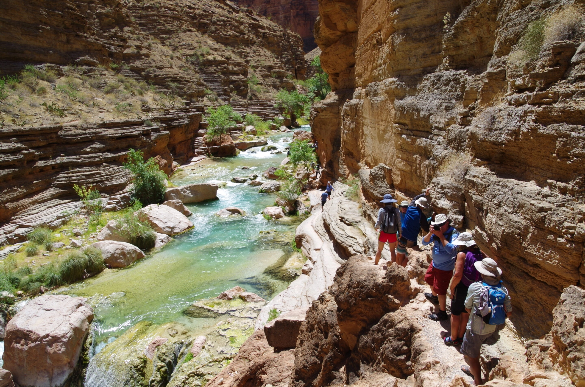 There is nothing like hiking in Grand Canyon. Here, dry rocky trails open up to cooling oases, waterlogged creek hikes reveal spectacular waterfalls, and steep climbs up the canyonโs slopes open up to breathtaking views. On our motorized rafts, youโll have an opportunity to travel from one incredible hiking destination to the next by river. In between guided hikes, youโll ride the Colorado Riverโs famous rapids with an experienced Hatch guide there to run the boat. Each night youโll camp between the canyon walls on a sandy beach or rock ledge outcrop along the side of the river.